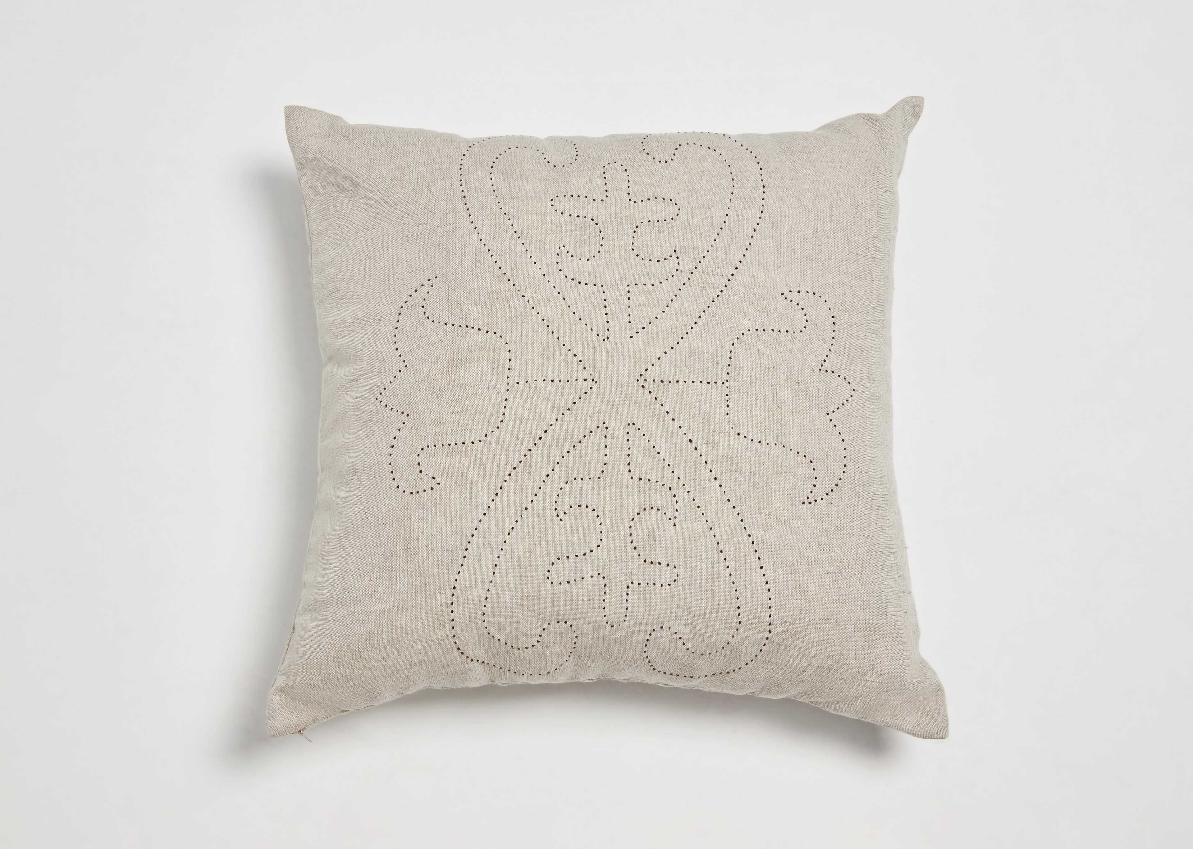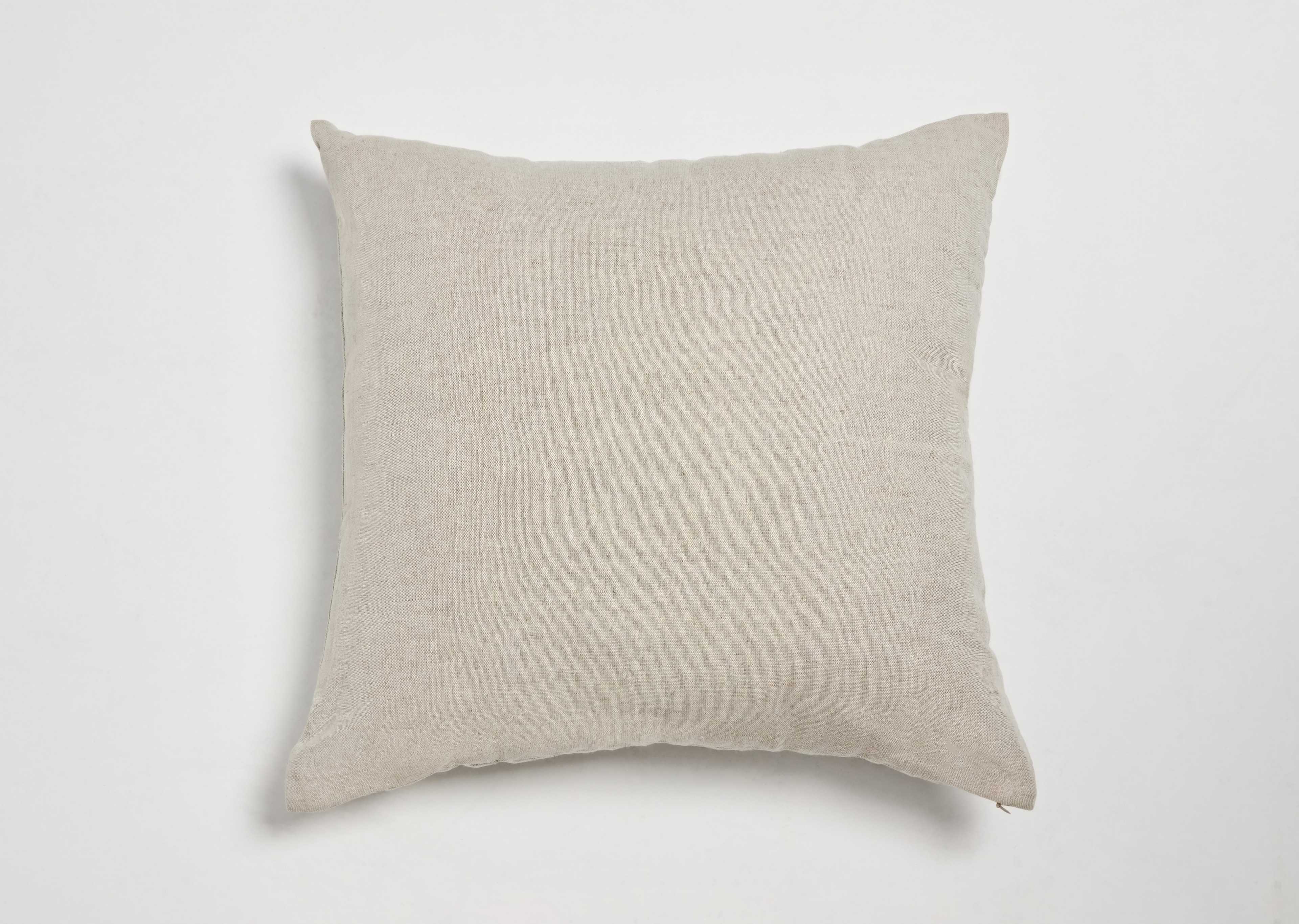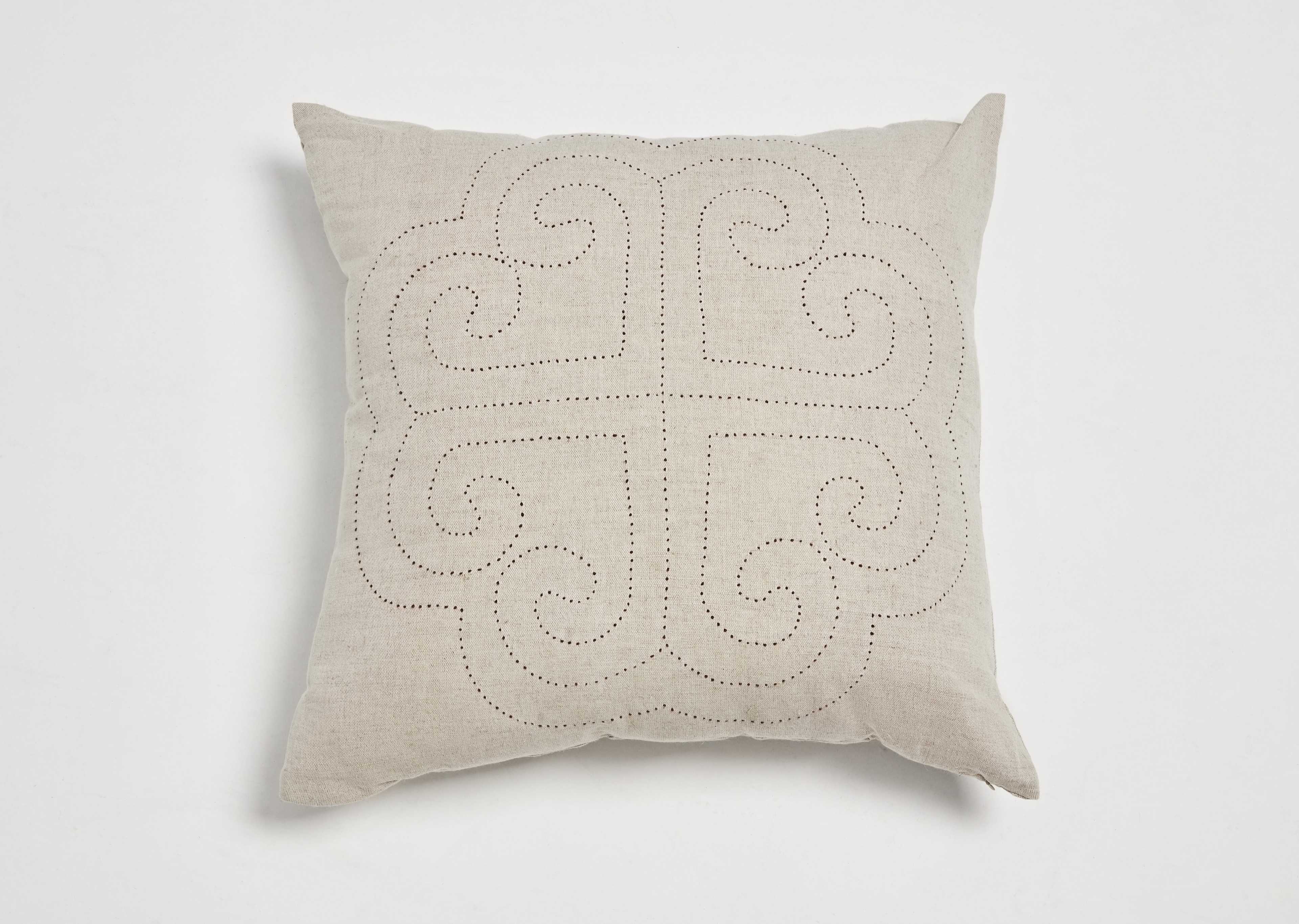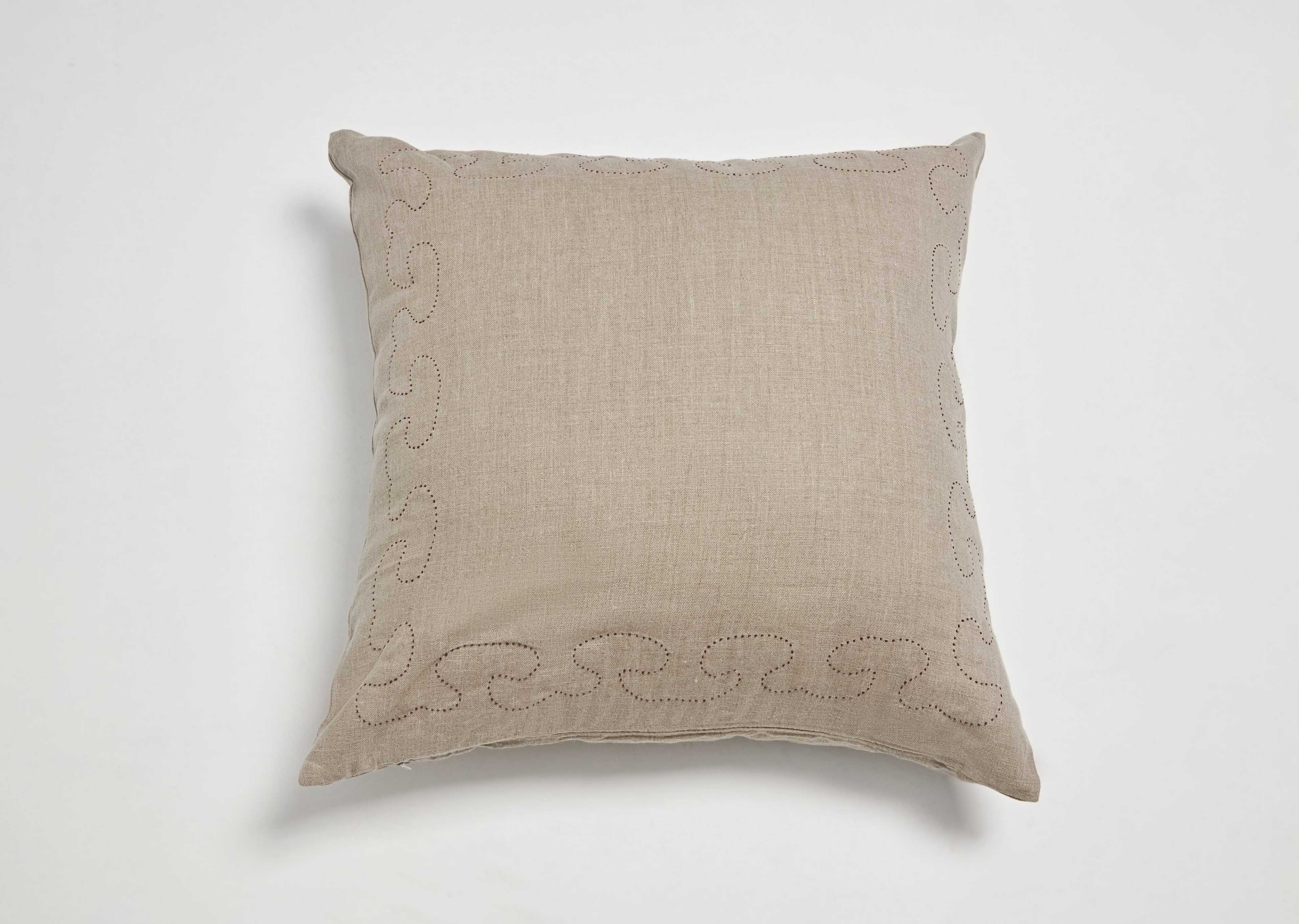 This natural linen cushion was handmade from the finest quality linen, and hand stitched to form a geometric pattern. It offers a gentle touch and a sense of tranquility to any space.