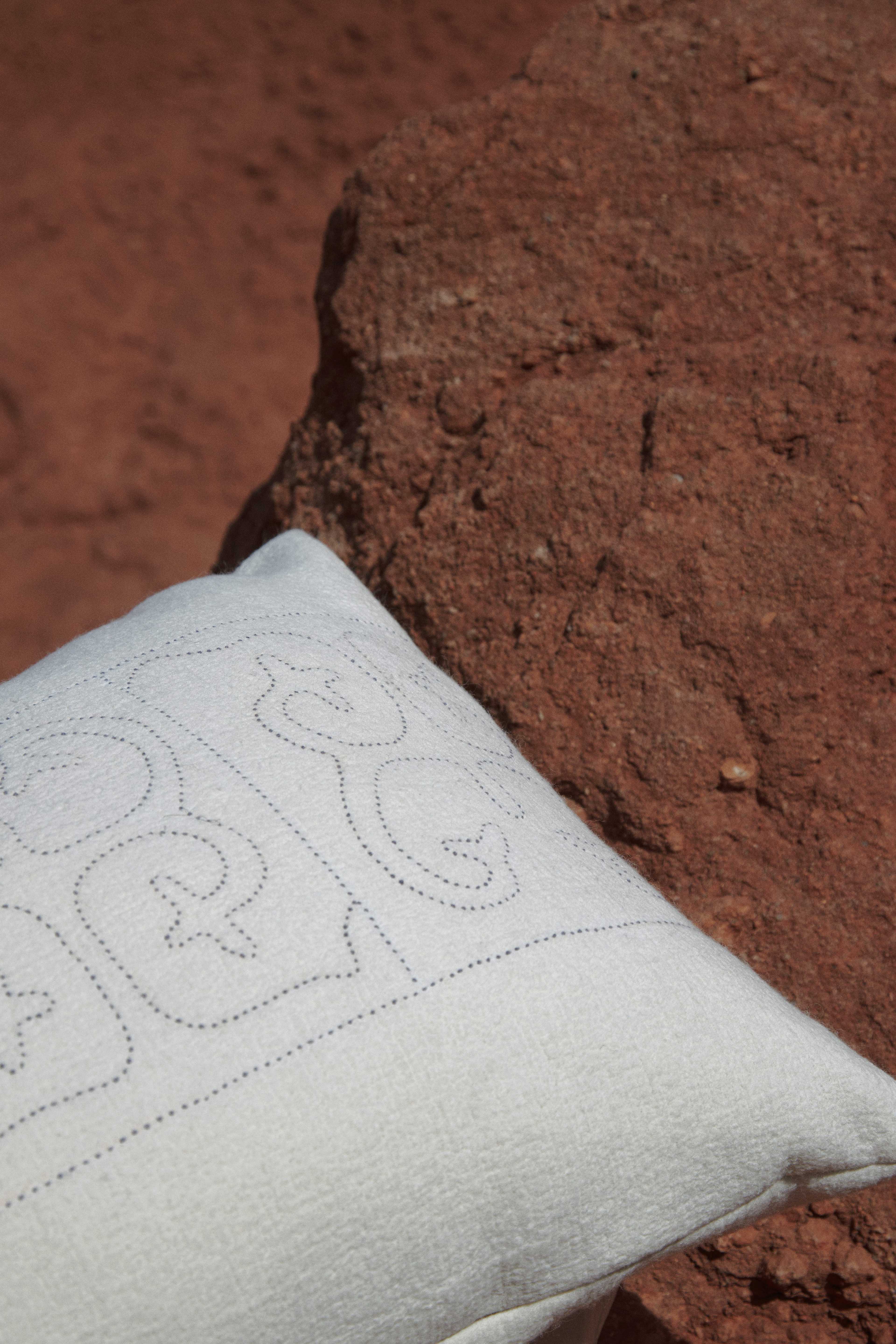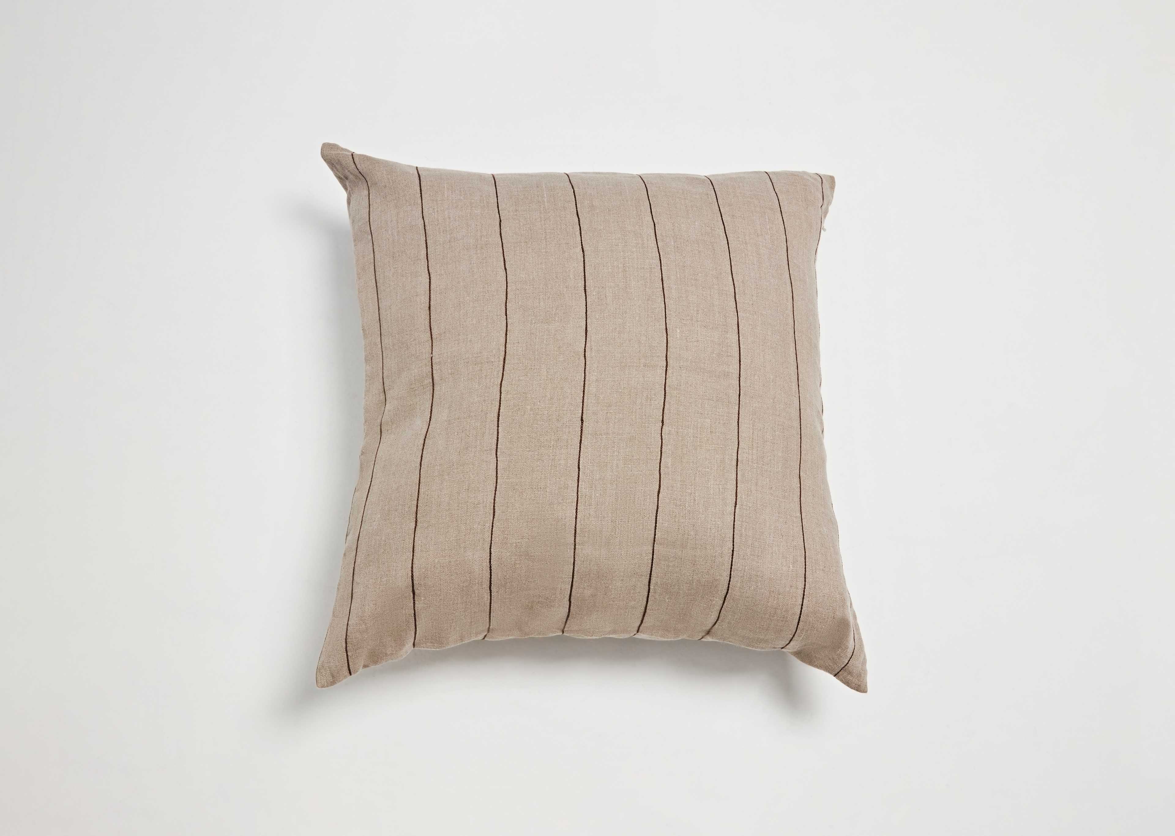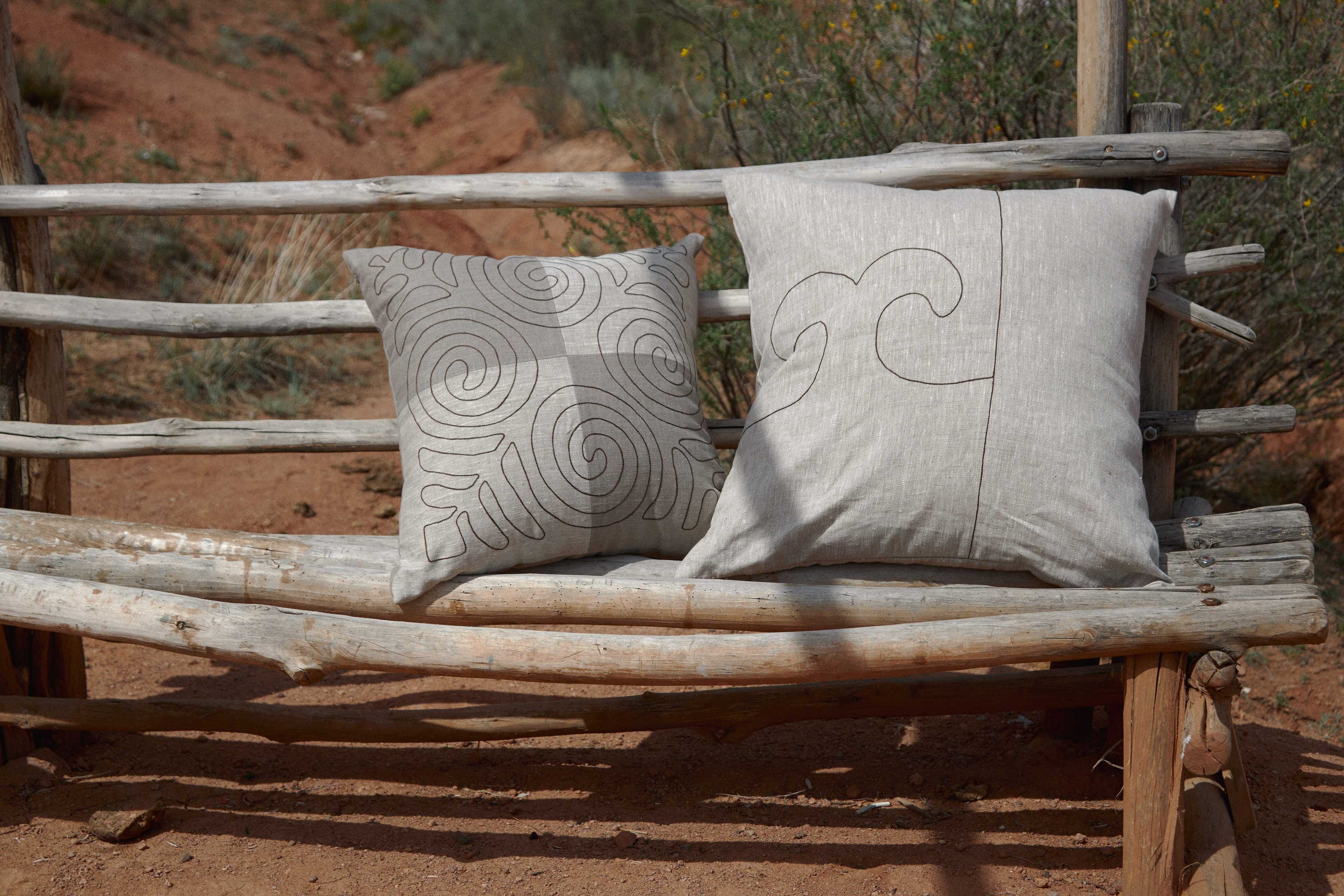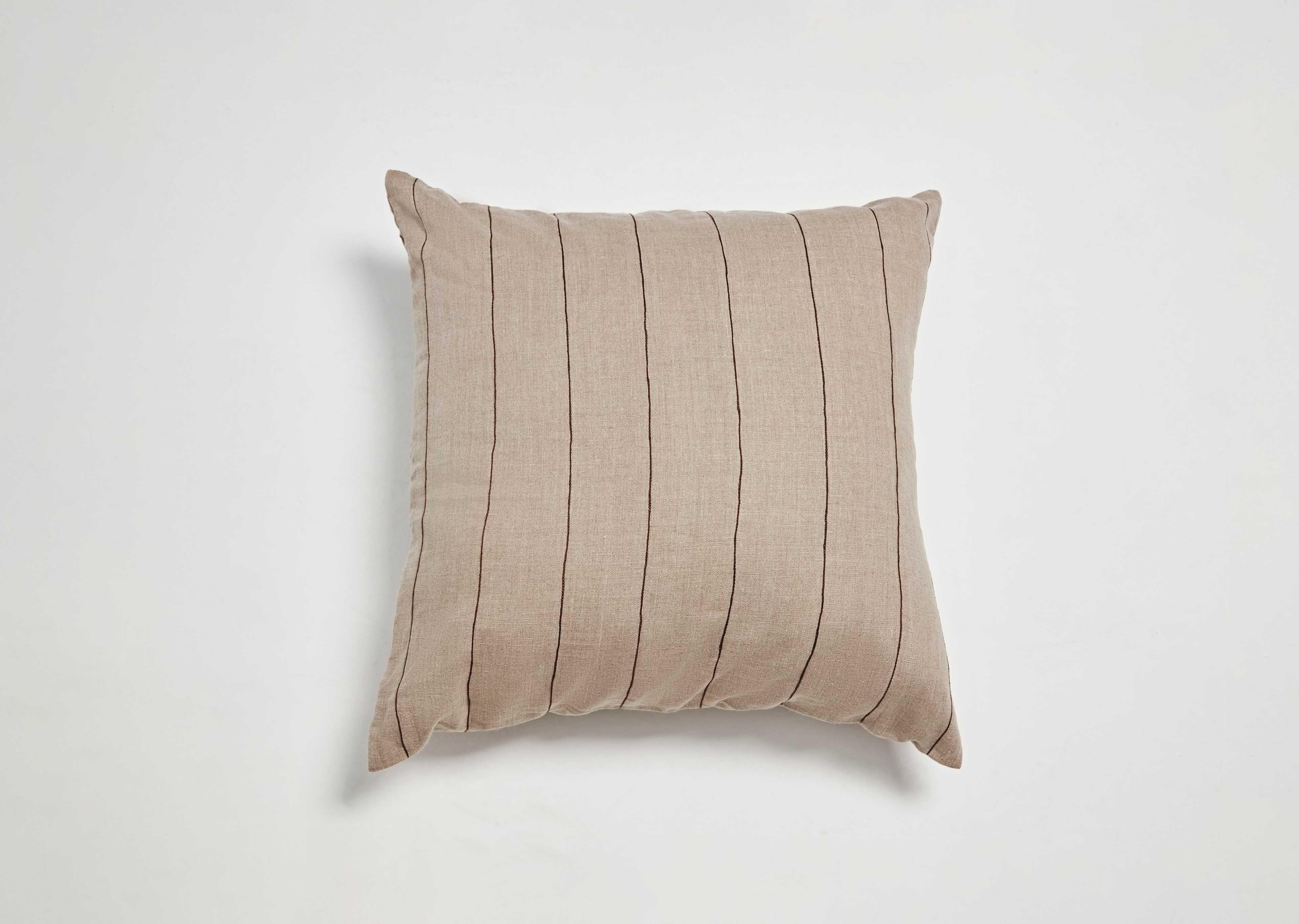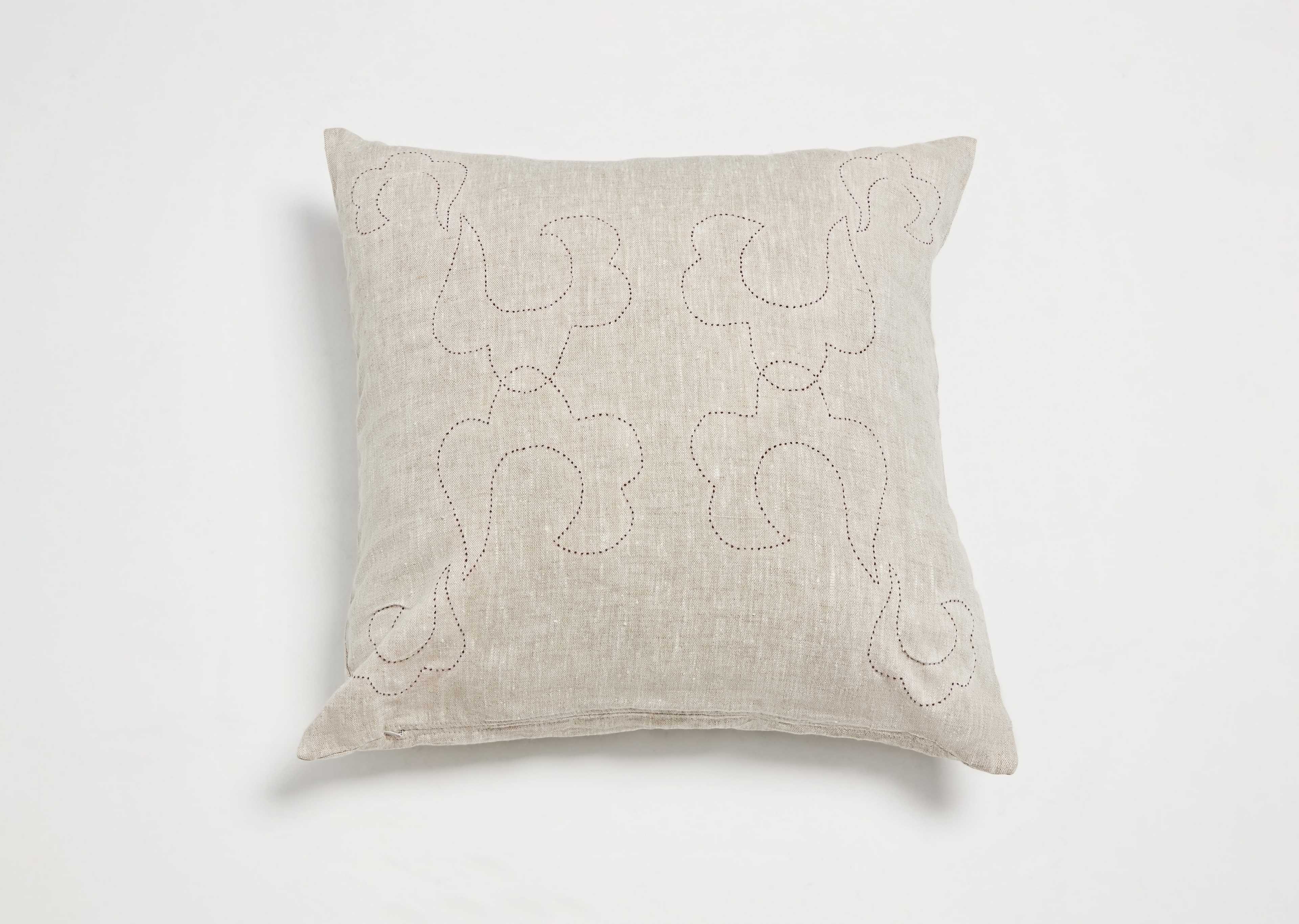 This natural linen cushion was handmade from the finest quality linen, and hand stitched to form a geometric pattern. It offers a gentle touch and a sense of tranquility to any space.