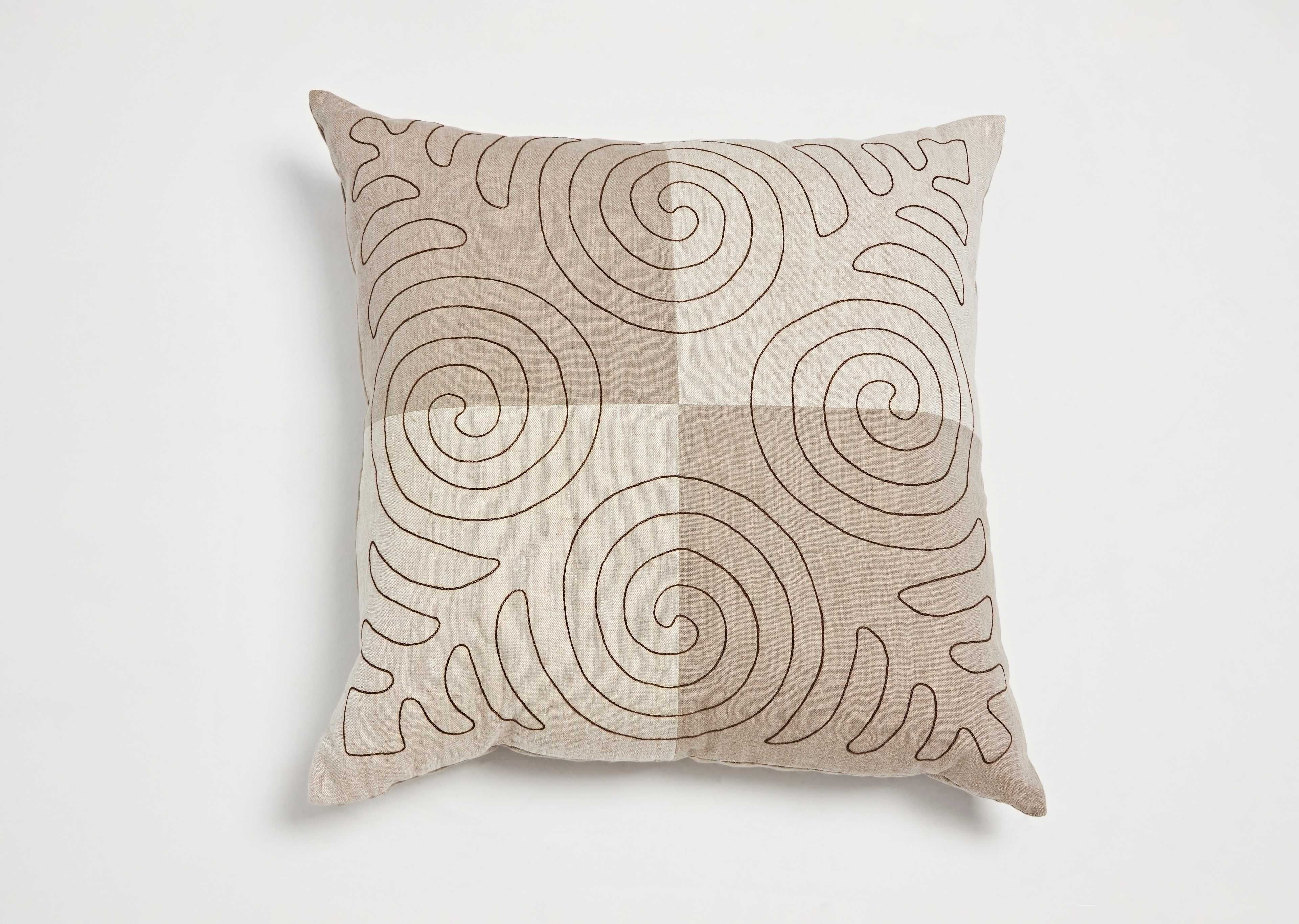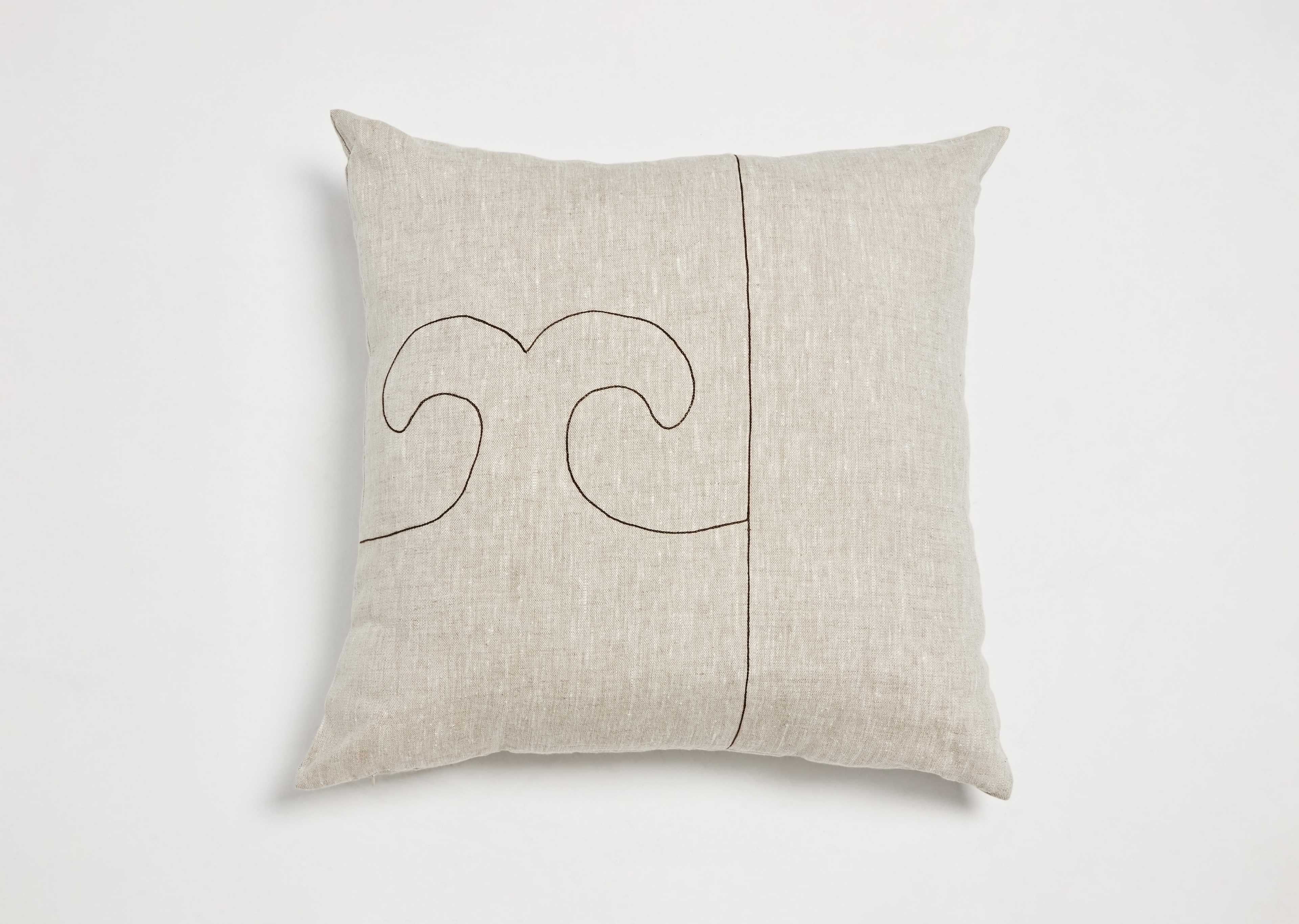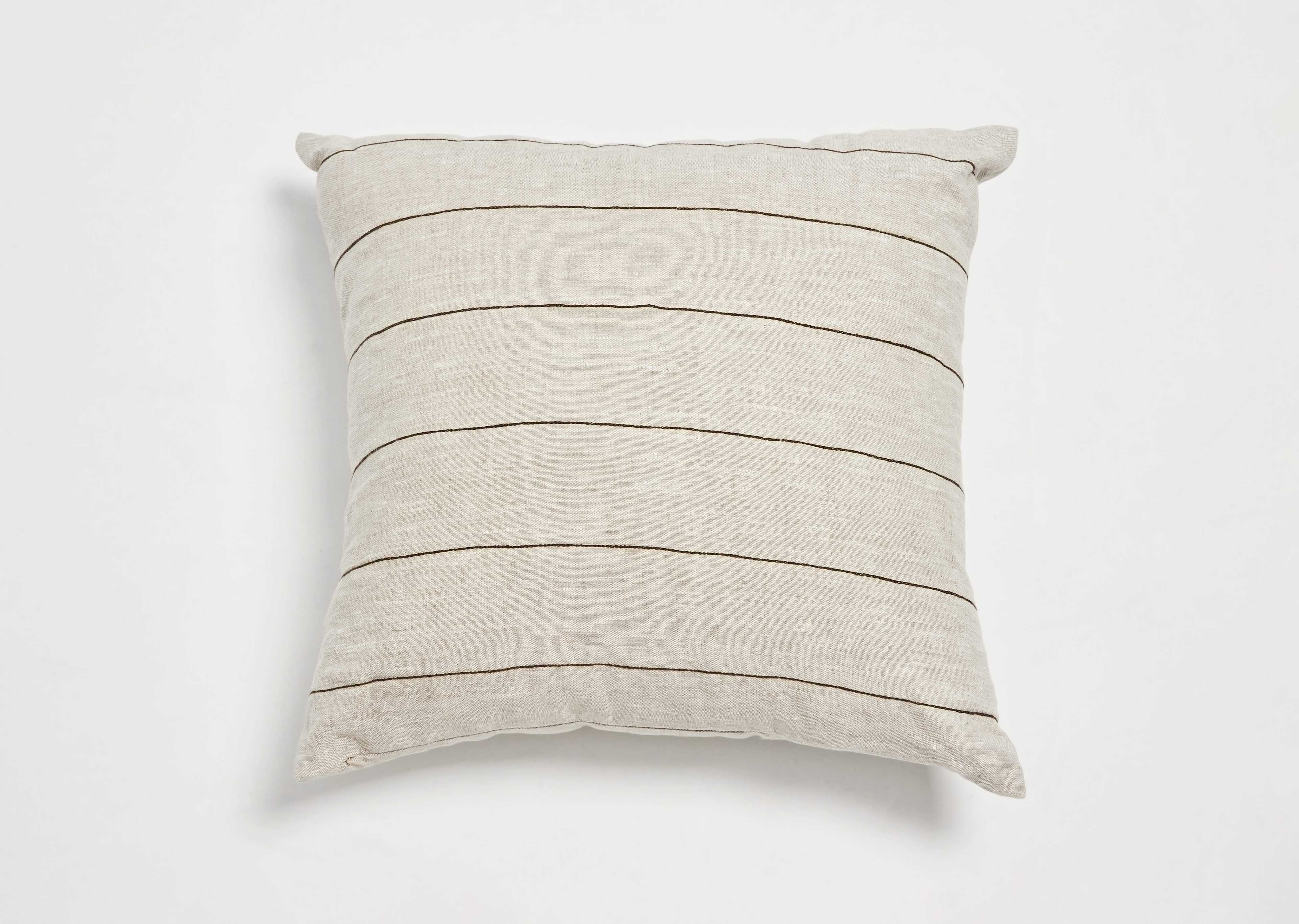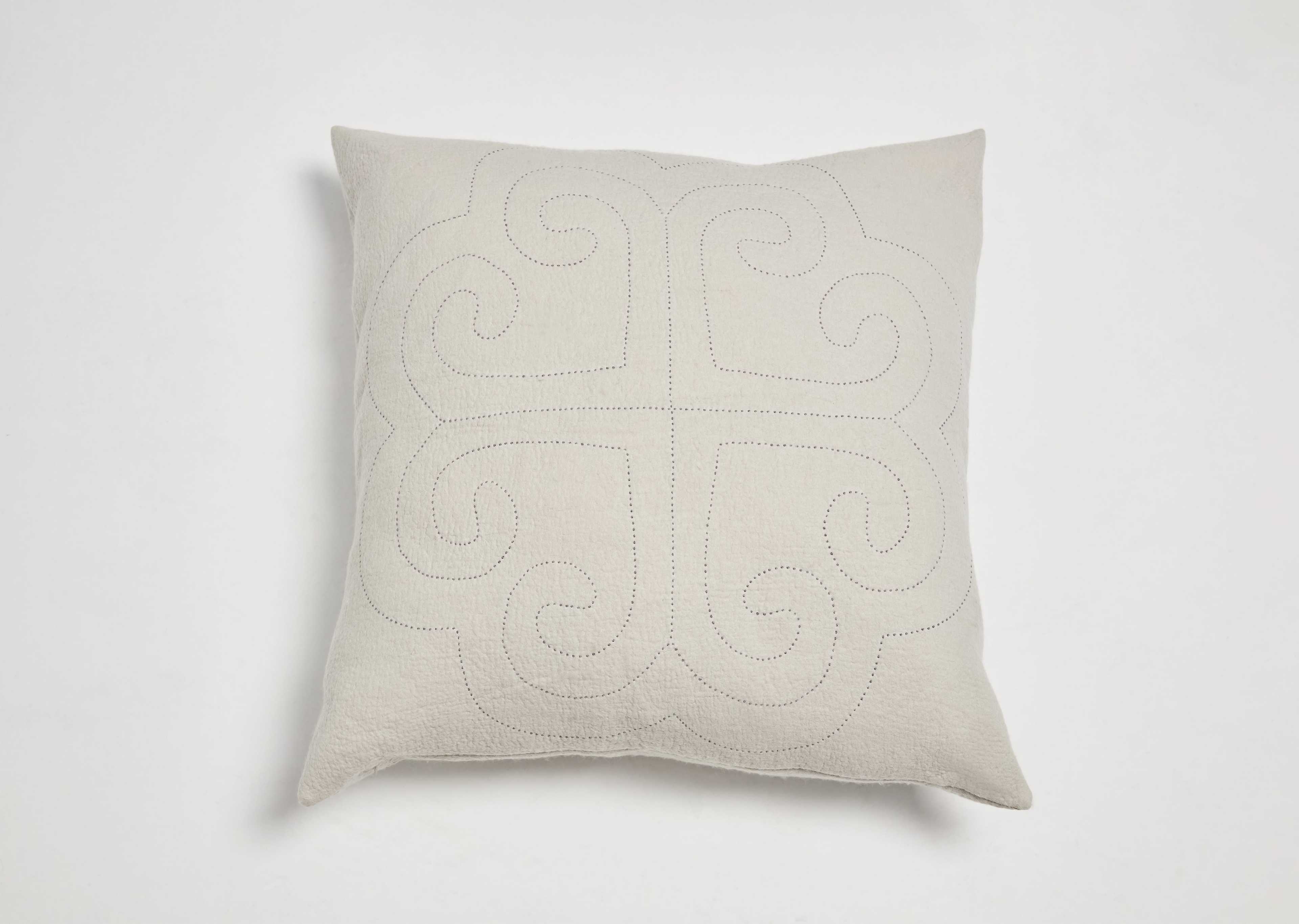 This natural linen cushion was handmade from the finest quality linen, and hand stitched to form a geometric pattern. It offers a gentle touch and a sense of tranquility to any space.